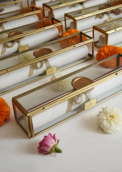 Interweaving the essence of the wedding, the wedding stationery and gifts are a luxurious delight that you can bestow on your guests.