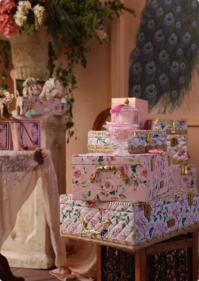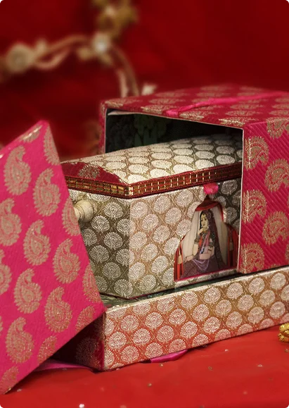 Puneet Gupta Invitations is a luxury boutique specializing in custom invitations and gifts for discerning clients worldwide. Our renowned expertise lies in crafting unique and extravagant designs that blend fine fabrics, metals, woods, crystals, and exquisite French papers.